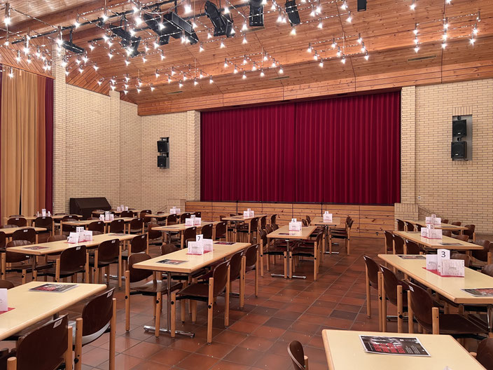 Die Theatervorstellungen werden dieses Jahr wieder mit Bankettbestuhlung durchgeführt (6 Personen pro Tisch). Das DVS-Team nimmt Ihre Bestellungen gerne vor Vorstellungsbeginn und in der Pause an Ihrem Sitzplatz entgegen. Auf der Karte stehen wieder ausgewählte Getränke und Snacks. Für die Bezahlung akzeptieren wir Bargeld oder TWINT.